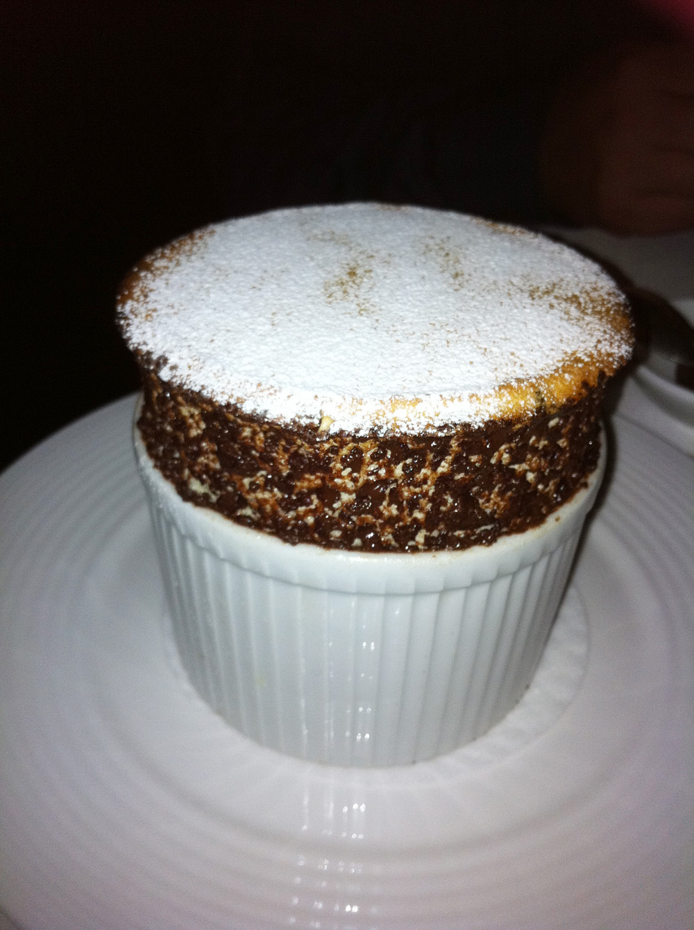I was quite full but in honour of our visitors I ordered a Lemon Tarte with Creme Fraiche ice cream which was perfectly enjoyable but fairly average. Shaun had to go for a Rice pudding with rhubarb, having tried the rice pudding with lime sorbet the previous night at Pollen Street (and thought they were pretty similar in texture and the rhubarb and lime both added tartness). Ange has an amazing looking Passion fruit souffle. It was beautiful, subtly perfumed and lightly textured.