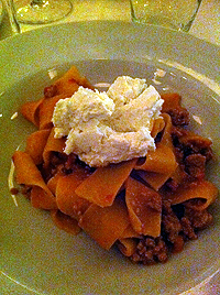 We soon got to enjoy our starters, mixed cold cuts for husband (way way way better than Hix, and not on the taste aspect alone); I tried the Zucca fritti, which was good but possibly better to share than as a stand alone starter, as it gets a bit repetitive after a couple of bites. The zucca slices were full of flavour if a touch greasy. The mains were where Zucca really shines for me. My pappardelle with veal ragu and fresh ricotta were incredibly good. The fresh pasta cooked to perfection (al dente), the ragu reminding me of something I would eat back home, with the cool, creamy ricotta a perfect complement. Loved it.
