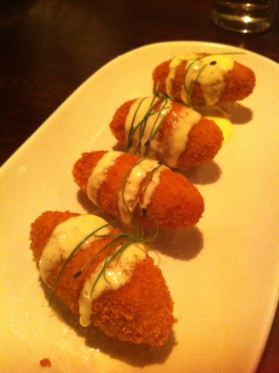 The restaurant is warmly decorated, and we had a table downstairs. I decided not to spend too much energy on ordering the food, and only chose a couple of tapas letting my companions do all the work. I was pleasantly surprised to find Falanghina on the wine list and I ordered a glass. It was not even cold, and I am now regretting not complaining about it but I was too engrossed in chatting with my friends to do it.
