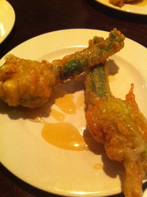 Another dish we tried was courgette flowers with goats cheese. These were the most silly item of the night, stuffy to the limit, with the courgette still stuck to the flowers, thin, greasy batter and covered in unnecessary honey.
