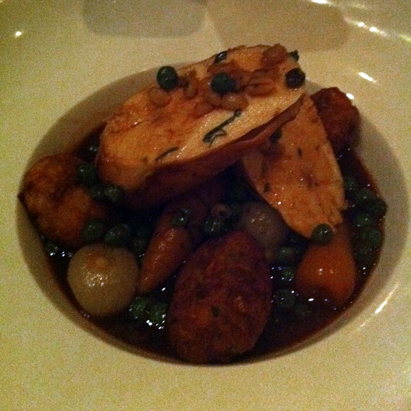 @Bmcboy enjoyed his main more than the starter, however. His dish was delicious, Corn fed chicken with barley broth and potato dumplings. I chose a vegetarian main of Roast artichoke, butternut squash and spinach stack with Somerset brie, and I thoroughly enjoyed it – decently sized portion, good flavours albeit a bit too sticky. Yet I would have liked more of the artichoke, as there was only a few mouthful of this and too much squash.