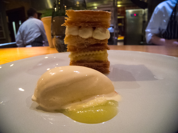 Cox apple millefeuille was very good, the millefeuille crispy and light. But what was to come was the icing on the cake. Kind of.