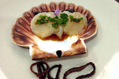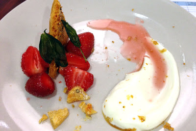 The scallops were so fresh, and hand dived in the Isle of Mull, the hake was also beautifully fresh. The full menu was Scallop sashimi with ponzu dressing, Panko crusted hake with pepper and squid ink, Macerated strawberries with black pepper honeycomb and creme fraiche. Delicious and quite challenging!