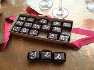We did better with the chocolates. At our friend’s wedding, the favours each guest received were a very welcome bar of chocolate. Locally produced in Seattle, no GM, ethical chocolate bars from Theo were laid on each guest’s table plate and it was quite fun to spot which bar you had and if you didn’t like the flavour, you’d swap with your neighbour before sitting down for the meal. @bmcboy even traded his (dark choc and almond) for a mint bar with our friend Richard.