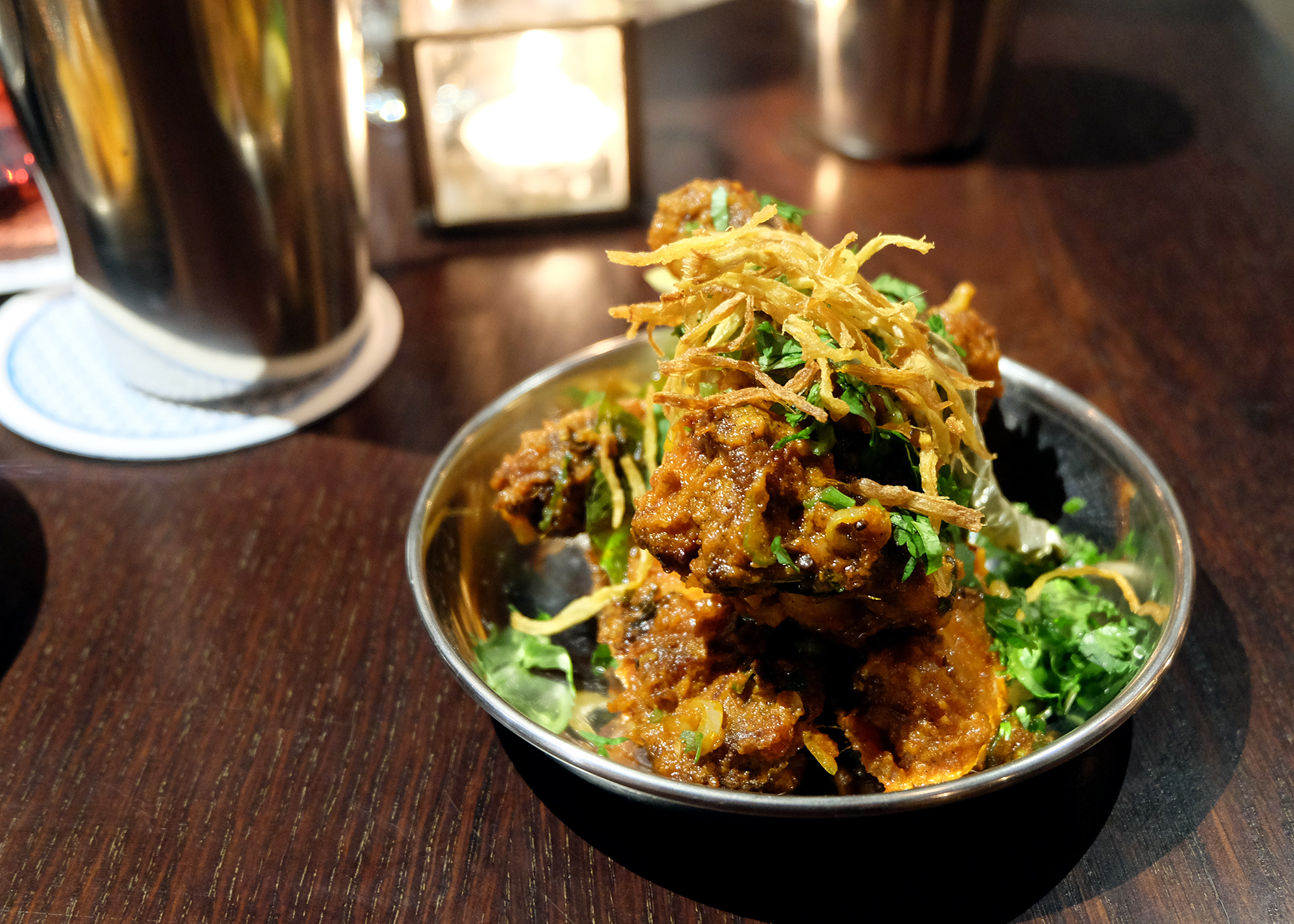 The restaurant is in a lower ground floor venue which used to be a bar. It’s spacious, and dimly lit with some interesting modern art works on the walls and low lights. The menu itself is quite small, with few options but somehow that makes it more authentic in my view. No the hundreds of dishes, but a few freshly made curries and biryani to focus.