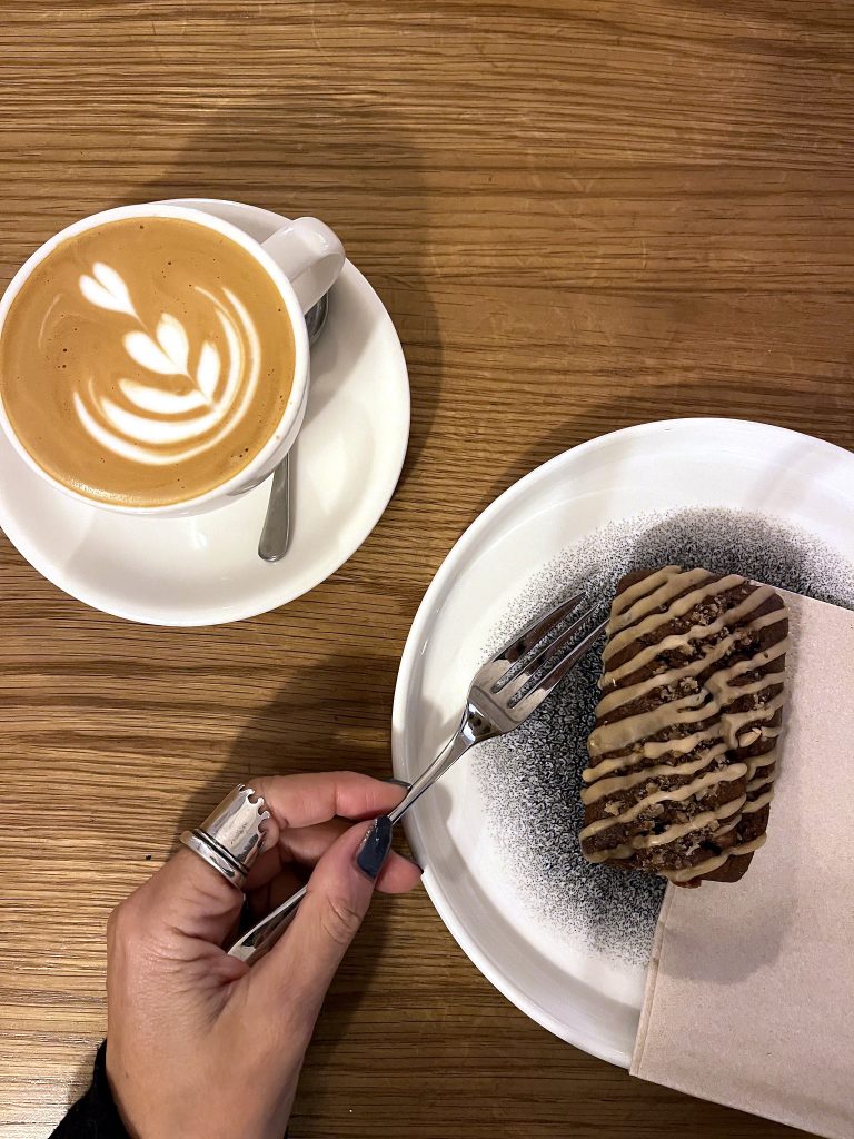 We realised Chester has loads to offer in terms of artisan coffee and cool places to have breakfast. With only one morning available, we picked Jaunty Goat on Bridge Street. It opens early on a sunday and has a very pleasant, bright interior (nordic style) with friendly and efficient service and fab selection of bakes and cooked dishes too. The coffee and walnut cake I had was delicious, not too sweet at all and moist; the belgian waffles with berries and yogurt truly excellent. The coffee of very high standard and I’d love to return.